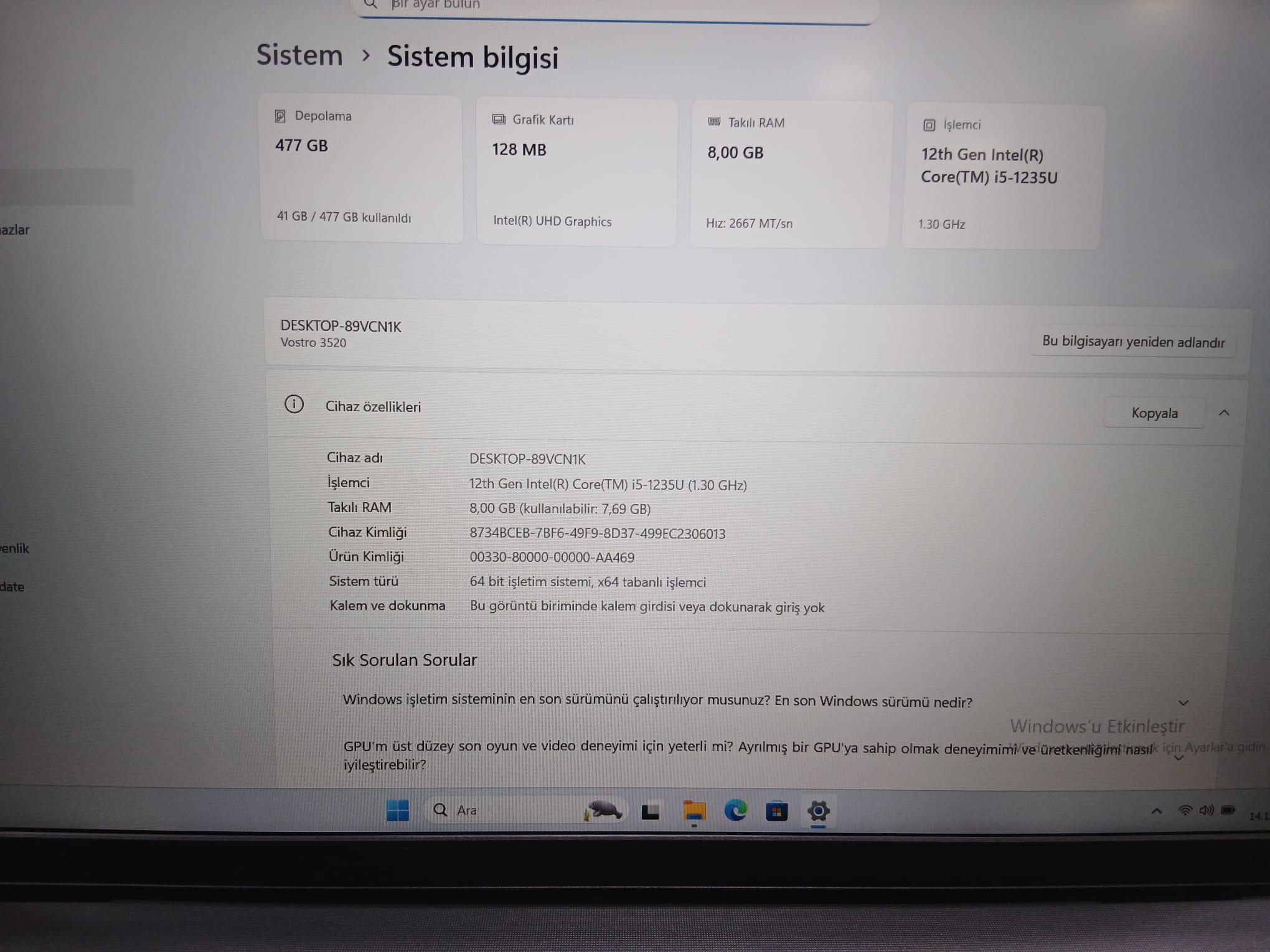 DELL İ5 12.NESİL İŞLEMCİ 8GB DDR5 RAM 500GB NVME SSD İNTEL UHD GRAPHİCS EKRAN KARTLI NOTEBOOK