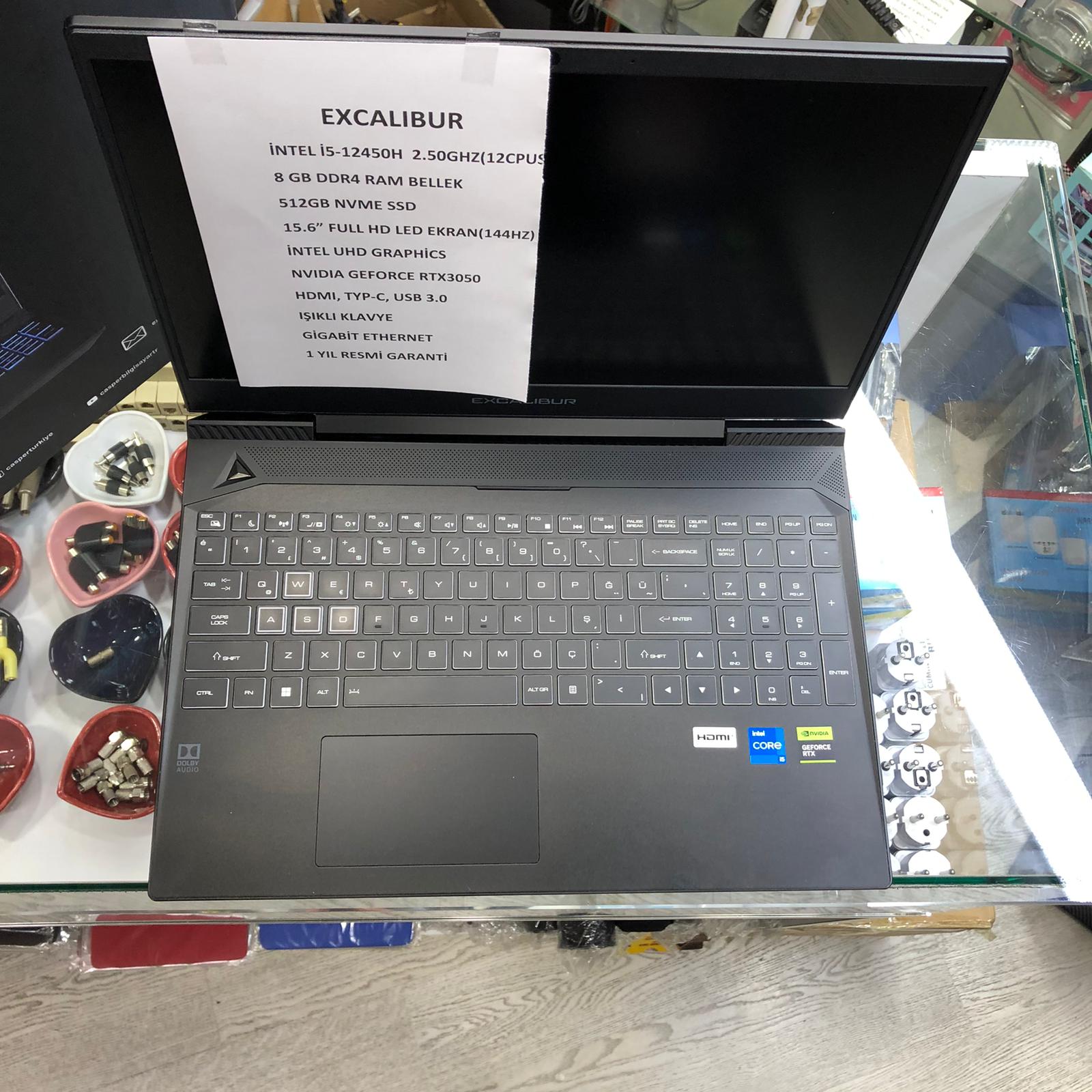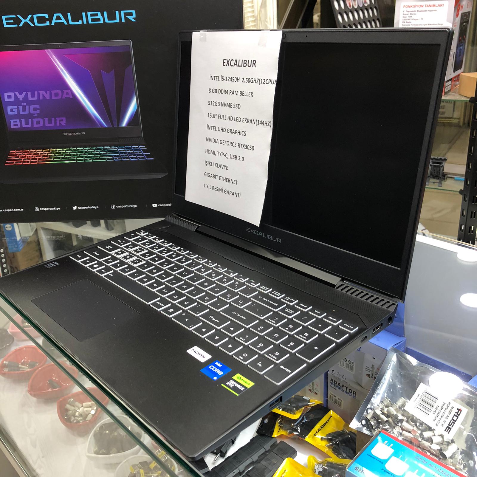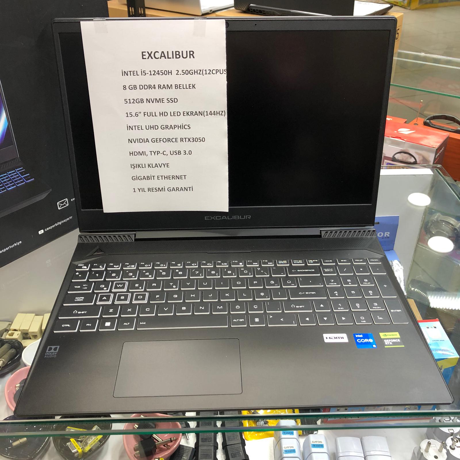 EXCALIBUR İ5 12.NESİL 8GB DDR4 RAM BELLEK 512GB NVME SSD NVIDIA RTX3050 EKRAN KARTI GAMİNG NOTEBOOK